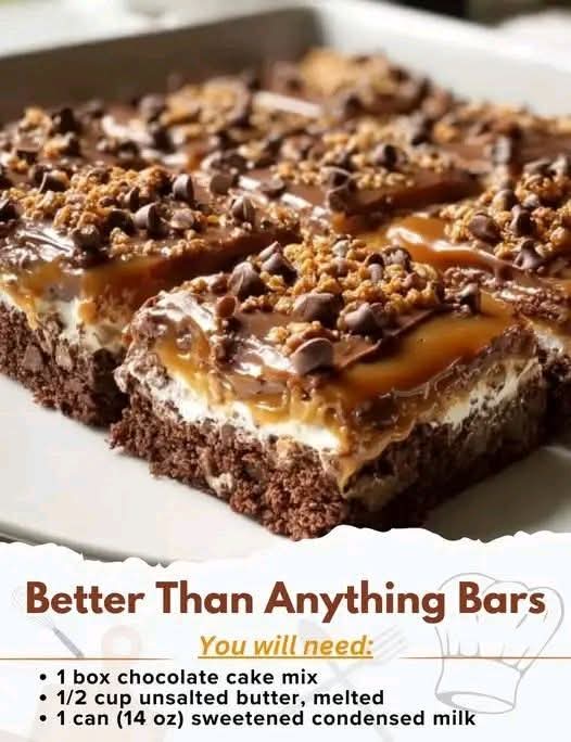 If you love chocolate, caramel, and buttery textures all in one bite, these Better Than Anything Bars will instantly become your new favorite treat. They’re decadent, easy to make, and dangerously addictive—perfect for parties, family gatherings, or just satisfying your sweet cravings. With layers of fudgy chocolate, creamy caramel, and crunchy toffee, every bite truly lives up to the name!