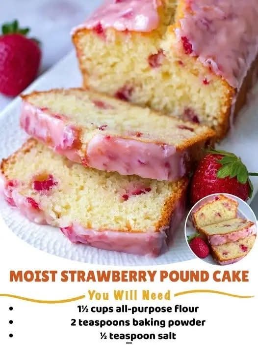 This Moist Strawberry Pound Cake is more than just a recipe; it’s an experience. It’s the scent of vanilla and butter filling your kitchen, the sight of a golden-brown crust with a pink-speckled interior, and the taste of sweet, sun-ripened strawberries in every single bite. It captures the essence of simple, heartfelt baking—where a few humble ingredients are transformed into something memorable and delicious. Whether you’re a seasoned baker or a novice in the kitchen, this recipe is a rewarding and reliable way to bring a taste of joy to your table. So, preheat your oven, hull those strawberries, and get ready to create a cake that will have everyone asking for a second slice.