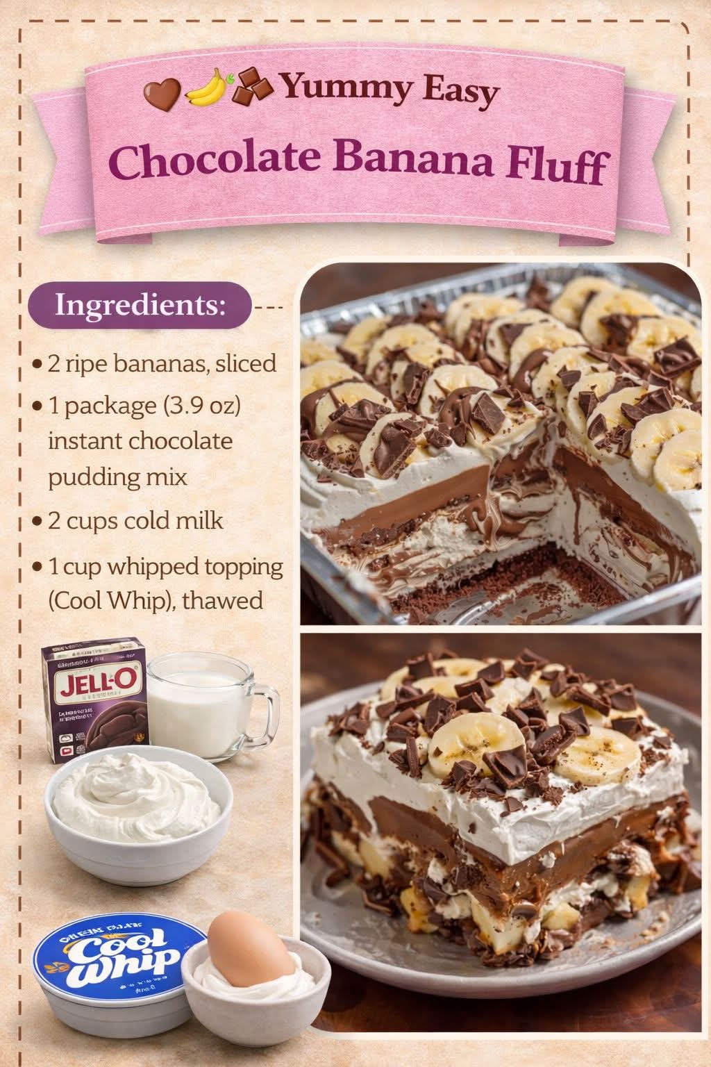 “Fluff” desserts became popular in mid-20th century American kitchens, especially with the rise of instant pudding mixes and ready-made whipped toppings. These desserts were loved for their simplicity, affordability, and ability to feed a crowd. Chocolate Banana Fluff is a modern twist inspired by classic banana pudding and chocolate mousse, combining both flavors into one easy dish.