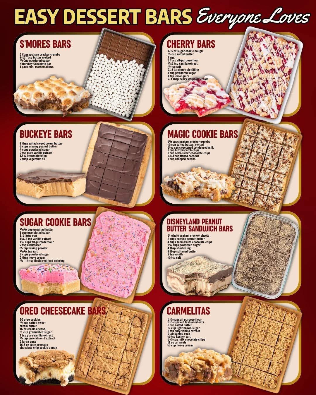 🍫 Ultimate Dessert Bar Collection: S’mores, Cherry, Buckeye, Magic, Sugar Cookie, Peanut Butter Sandwich, Oreo Cheesecake & Caramelitas