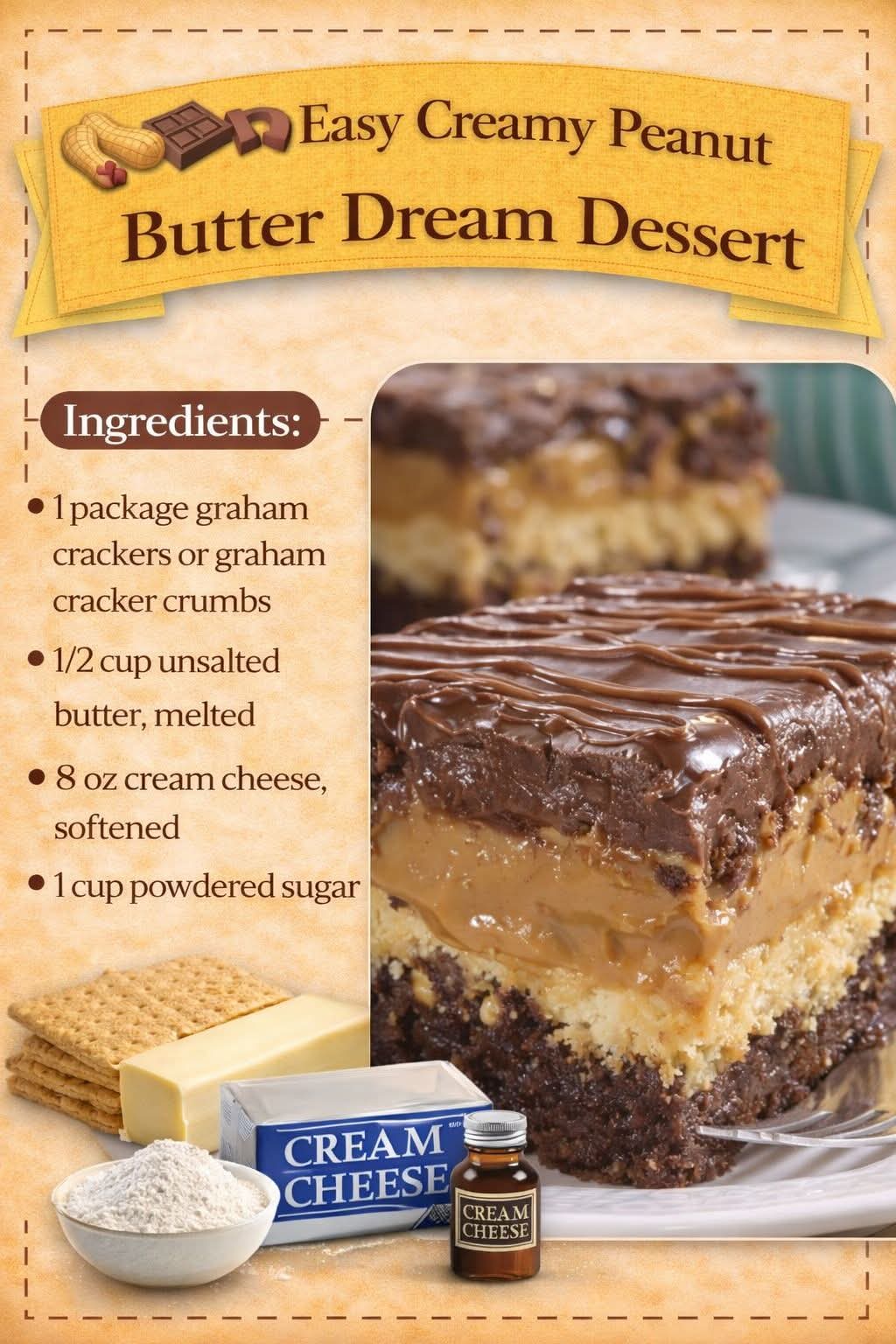 Peanut butter desserts have long been a staple in American home baking, especially in no-bake recipes that became popular in the mid-20th century. With the rise of convenience foods like whipped topping, desserts like this “dream dessert” became beloved for their simplicity and indulgent taste.