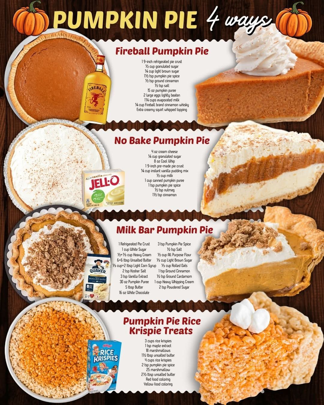 If you want, I can also make a full printable chart with all four recipes side-by-side, including baking times, difficulty, and sweetness levels—so you can choose the perfect pumpkin pie for any occasion at a glance.
