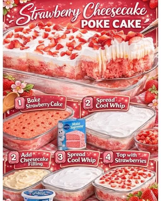 🍓 Strawberry Cheesecake Poke Cake – A Sweet Symphony of Flavor
