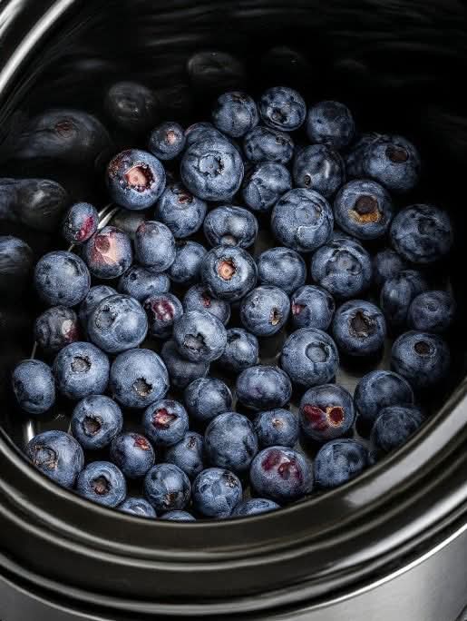 Lightly grease your slow cooker with butter or non-stick spray. - Add the Blueberries