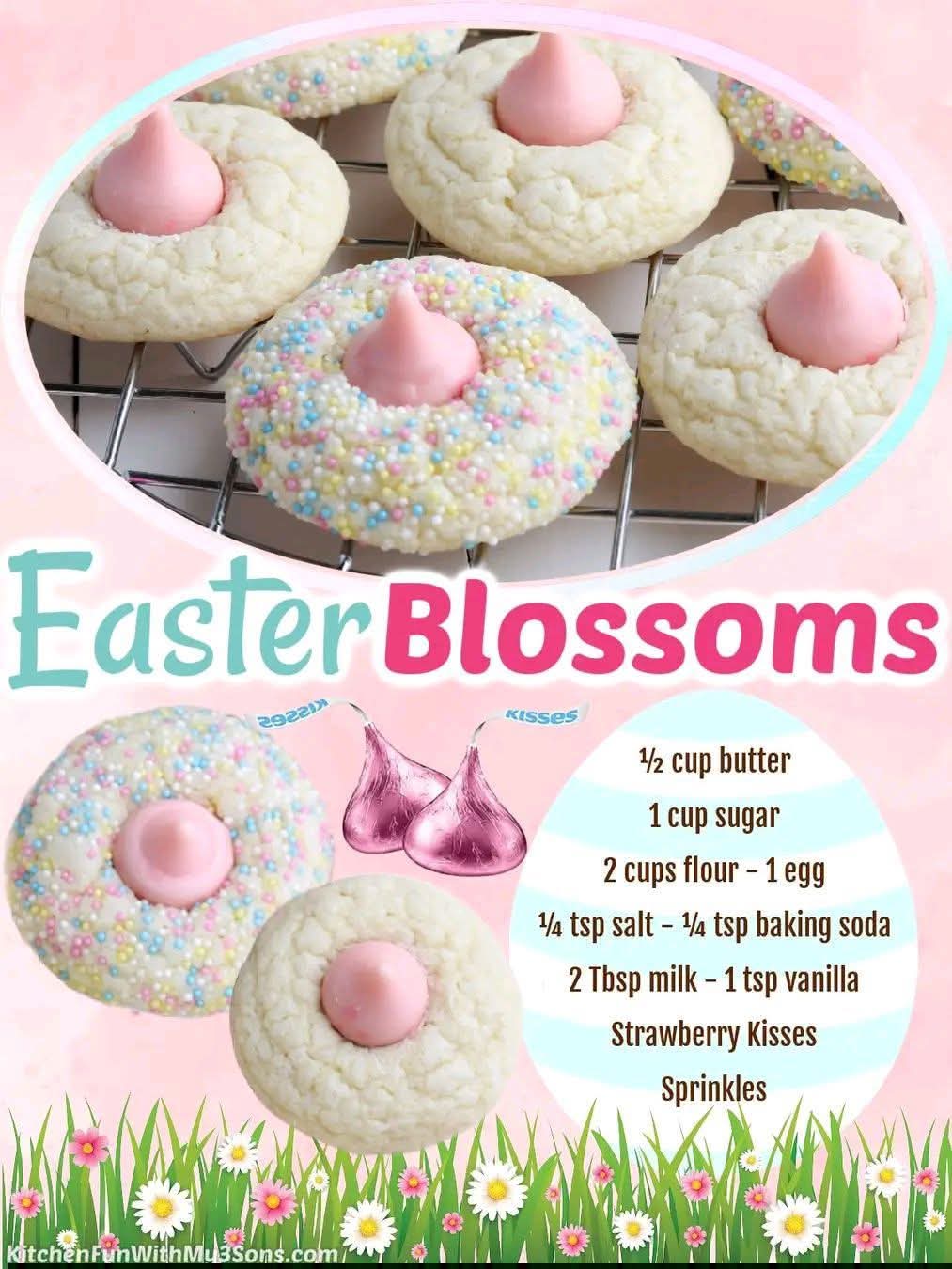 Blossom cookies became popular in the 1950s, traditionally made with peanut butter and chocolate kisses. Over time, bakers created fun variations—like this strawberry version—adding color, flavor, and creativity. Today, they’re especially loved during Valentine’s Day and festive occasions.