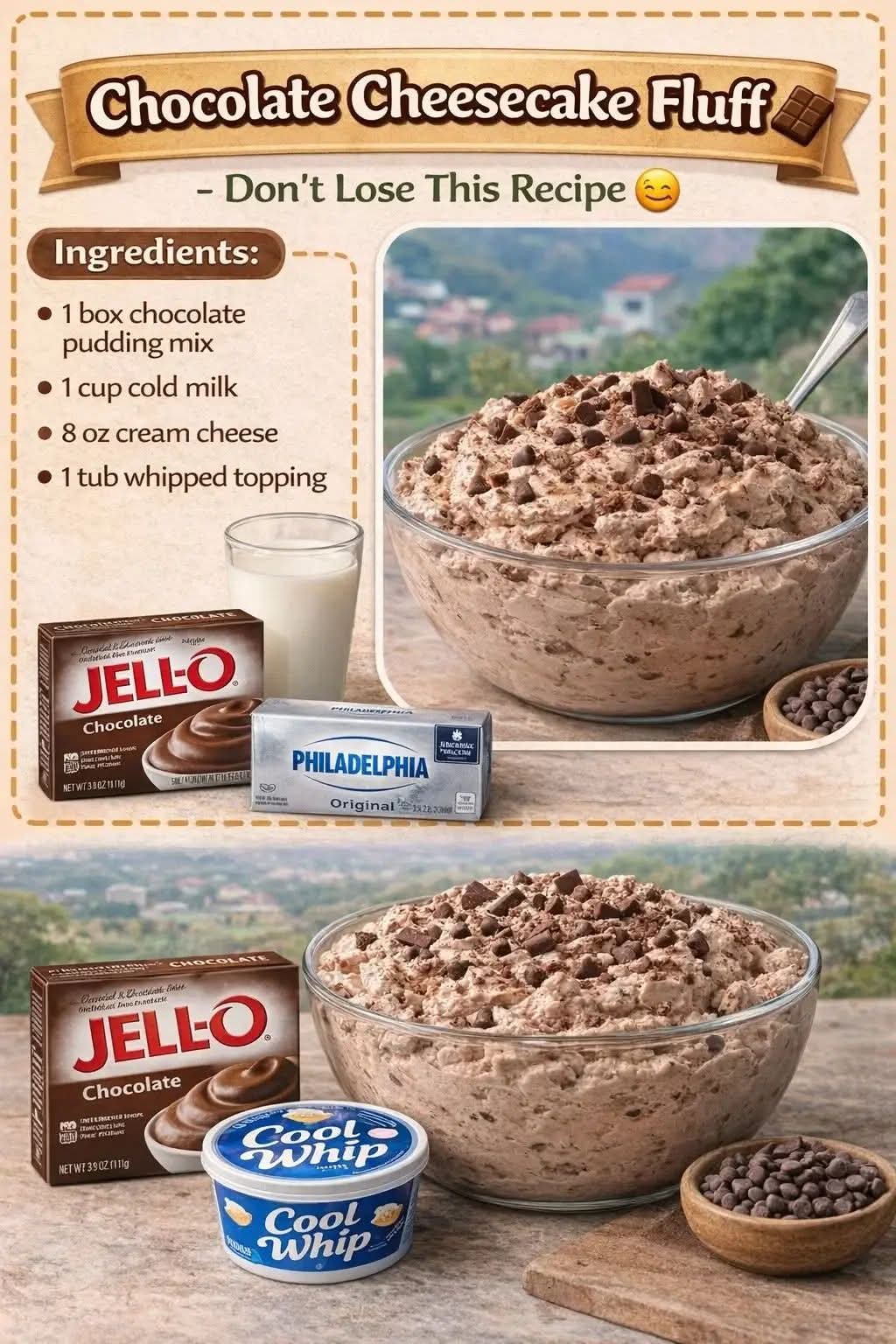 The Chocolate Cheesecake Fluff is more than just a recipe; it’s a solution. It’s the answer to the craving for something deeply chocolatey, luxuriously creamy, and effortlessly satisfying. With its simple ingredients and no-bake method, it proves that you don’t need to be a pastry chef to create a dessert that feels special. Whether you enjoy it as a quick weekday treat or as a stunning finale to a festive meal, this fluff is sure to become a beloved favorite. So go ahead, whip up a batch, and experience the joy of a dessert that’s as fun to make as it is to eat.