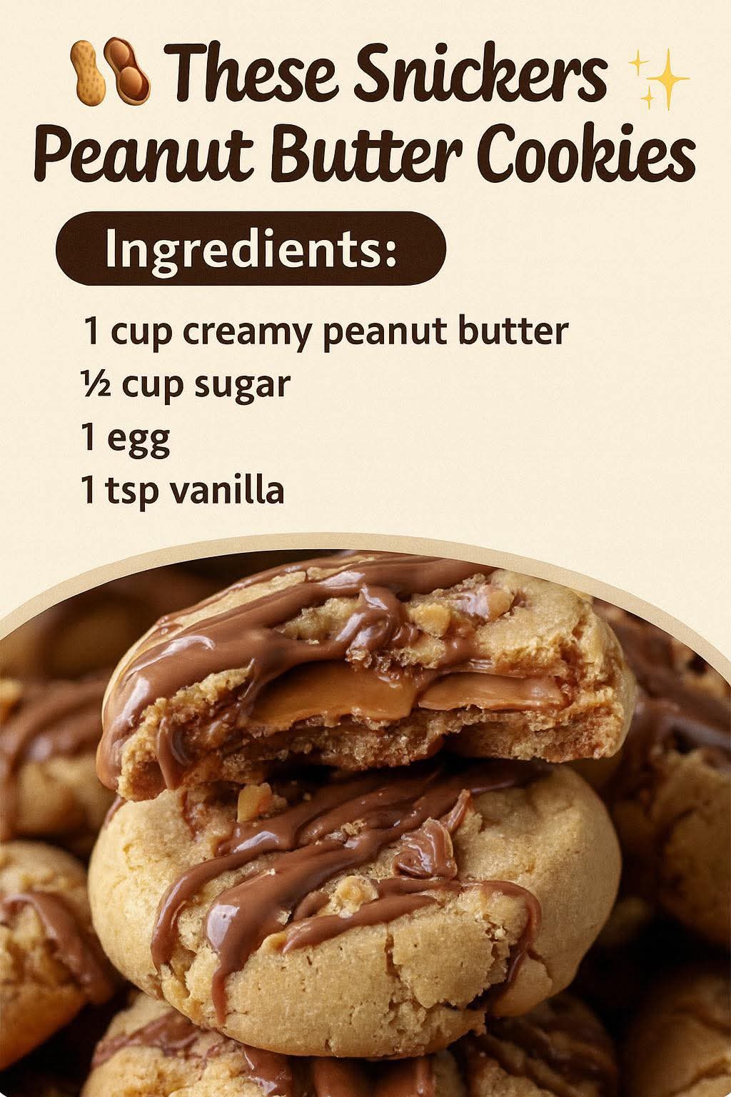 🍫🥜 Snickers Peanut Butter Cookies – Soft, Chewy & Irresistible Treat