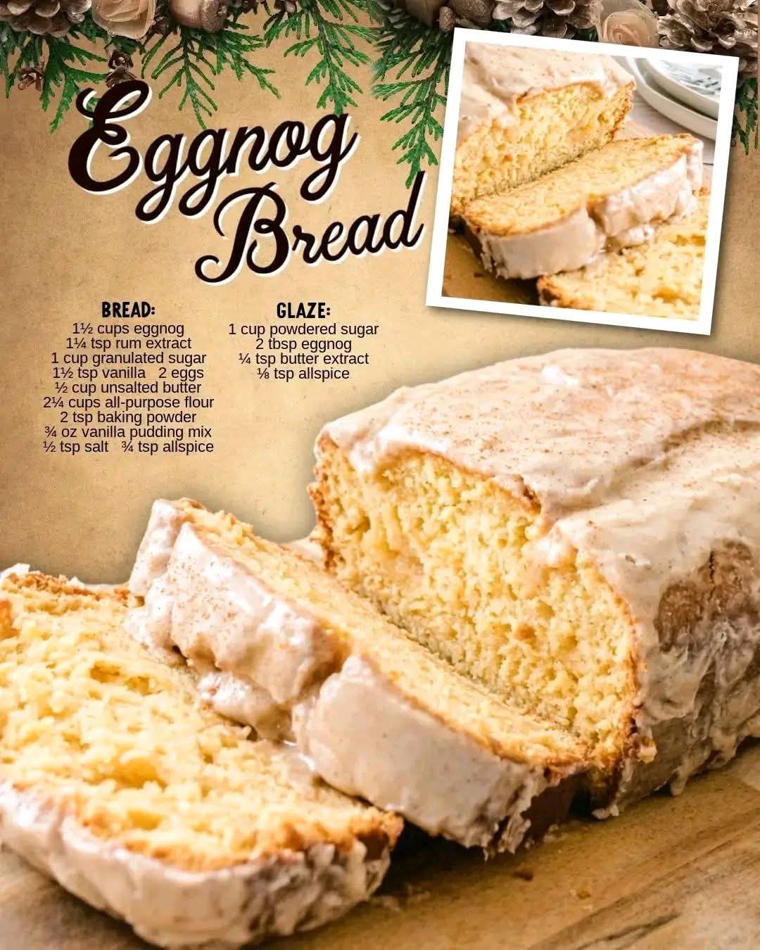 Eggnog Bread is more than just a recipe — it’s a slice of holiday comfort. From the warm spices to the creamy richness, every bite feels like Christmas morning. It’s simple enough for everyday baking but special enough to share with loved ones.