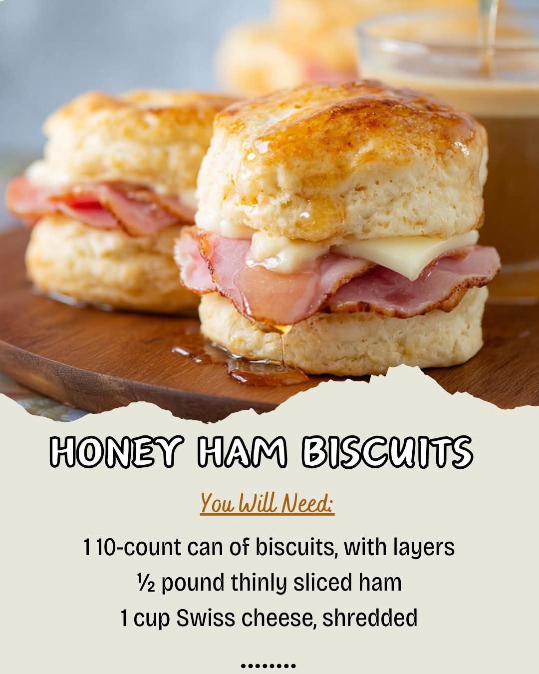 Turn your leftover holiday ham or a simple deli purchase into a mouthwatering, crowd-pleasing treat! These Honey Ham Biscuits feature fluffy, golden-baked canned biscuits filled with savory ham and nutty, melted Swiss cheese, all topped with a luscious, sweet honey butter glaze. They are the perfect balance of salty and sweet, with a tender, flaky texture that makes them absolutely impossible to resist. Ideal for a quick breakfast, a delightful brunch addition, a satisfying snack, or even a fun, easy dinner, these little sandwiches come together in just 30 minutes.