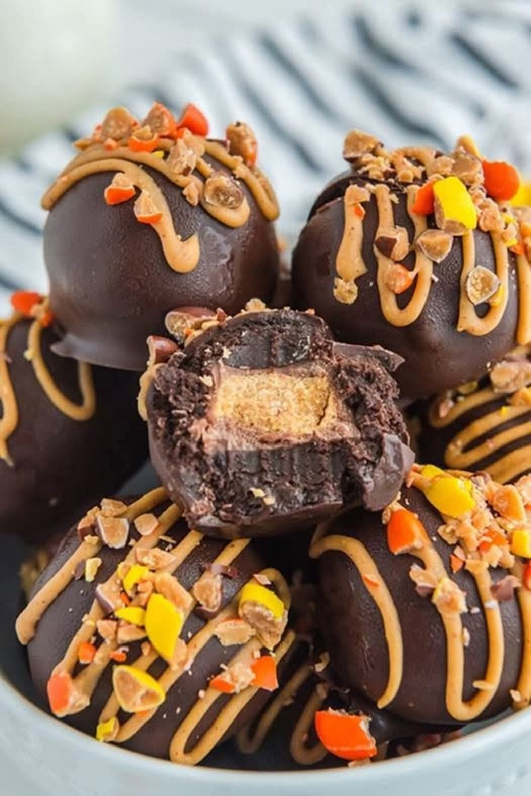 Truffles trace their origins to 1920s France, where chocolatiers created rich ganache centers coated in cocoa powder. Over time, American candy makers adapted the concept, adding nuts, candy bits, and flavor twists. The combination of chocolate, peanuts, and candy in these truffles nods to both European elegance and the playful creativity of modern confectionery.