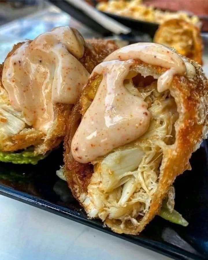 The Birth of a Fusion Star: The concept of combining these two dishes is a relatively modern innovation, born from the creative energy of fusion cuisine that gained popularity in the late 20th century. Chefs and home cooks began experimenting with blending flavors and techniques from different culinary traditions . The idea of taking the savory, luxurious filling of a crab cake and stuffing it into an egg roll wrapper was a stroke of genius. It transformed the delicate crab cake patty into a portable, ultra-crispy finger food, perfect for parties and modern gatherings. This dish represents the best of culinary creativity, showing how tradition can be a springboard for exciting new flavors .