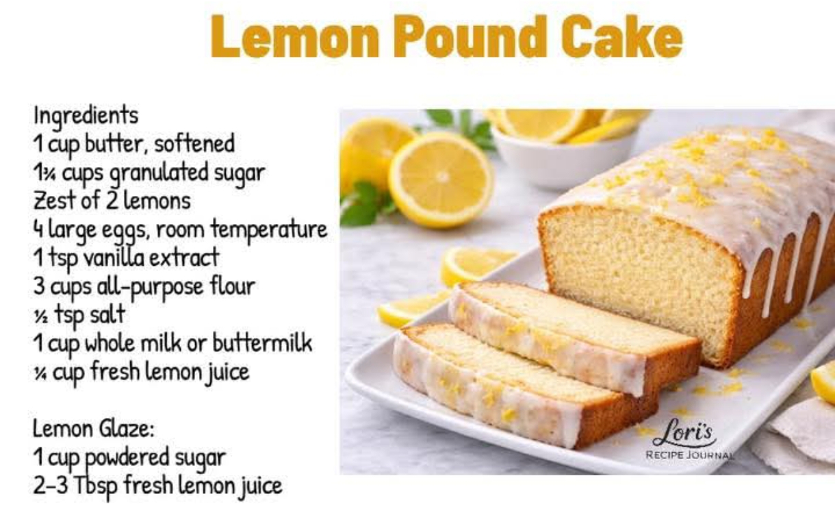 This lemon pound cake isn’t just a dessert—it’s an experience: buttery, tender, and perfectly balanced with citrus brightness. It’s a cake that brings people together, whether as a thoughtful gift, a centerpiece for brunch, or a sweet treat to enjoy slice by slice.