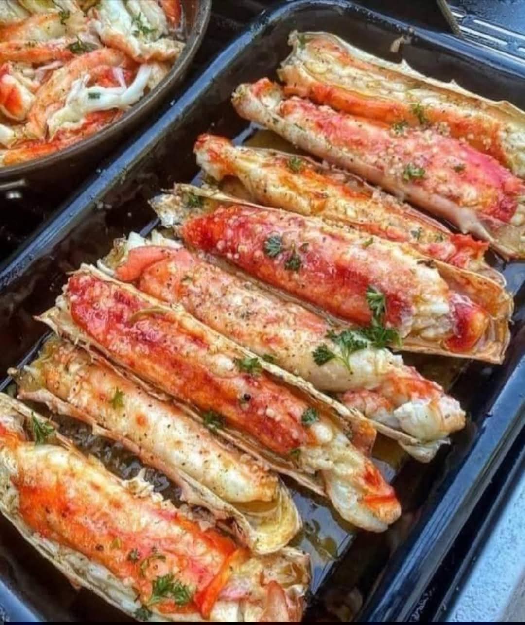 4. The final touch. Remove the crab legs from the oven. Transfer them to a serving platter and drizzle with the remaining butter sauce. Garnish with fresh chopped parsley for a pop of color and freshness.