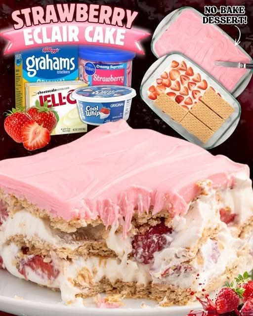 Strawberry Éclair Cake is proof that some of the best desserts are simple yet decadent. Its creamy layers, soft graham crackers, and sweet strawberries create a melt-in-your-mouth experience that’s both comforting and celebratory. It’s the kind of dessert that draws people to the table and keeps them coming back for seconds.