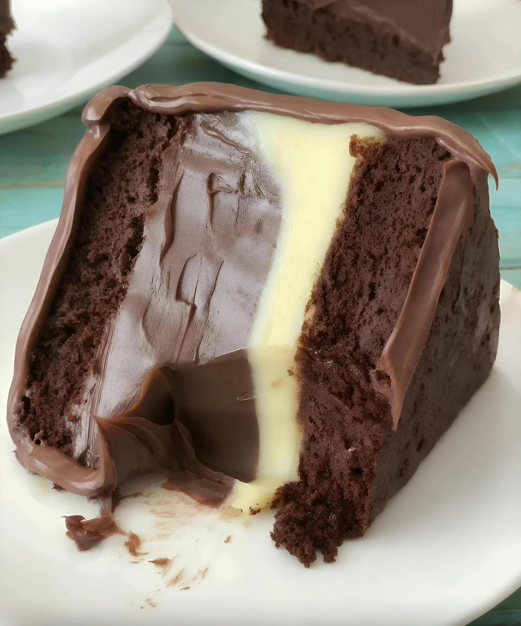 • It has three textures: fluffy cake, creamy filling, and smooth chocolate glaze.
