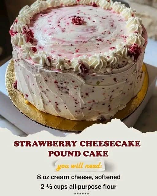 Strawberry Cheesecake Pound Cake is a stunning dessert that combines the best of three worlds: buttery pound cake, creamy cheesecake, and vibrant strawberries. Its rich flavor and beautiful layers make it a show-stopping centerpiece for any table.