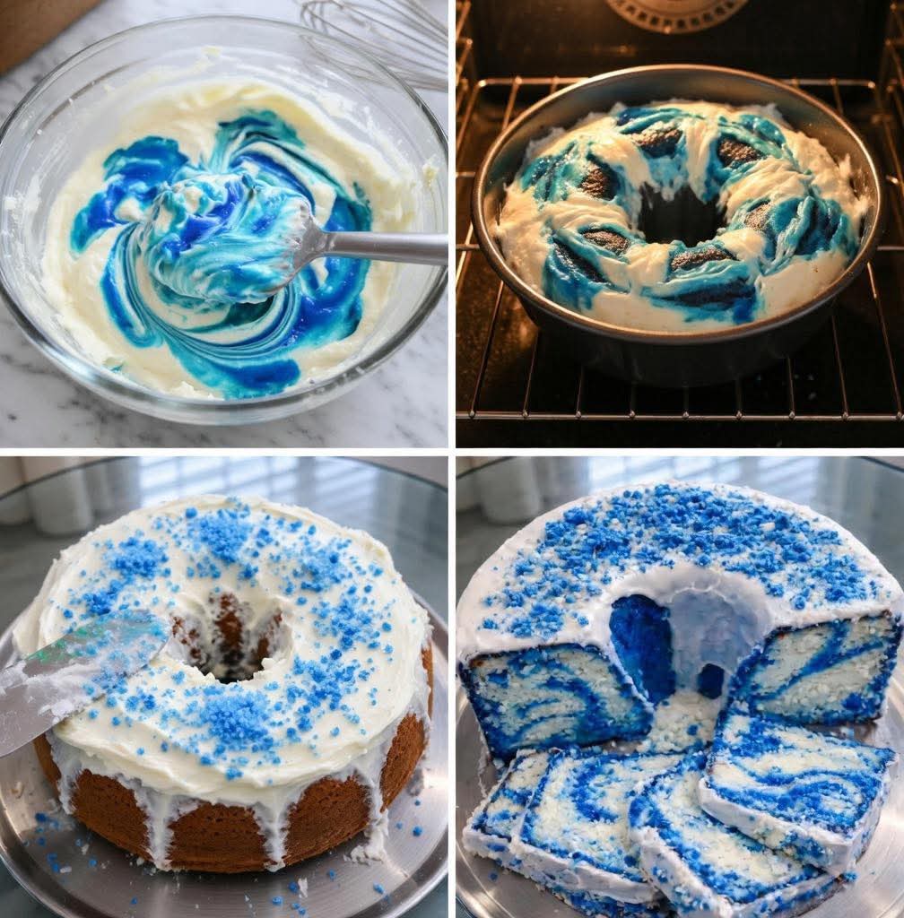 The Blue Velvet Swirl Pound Cake with Cream Cheese Glaze and Blue Crumble is more than just a dessert — it’s a show-stopping centerpiece. Its buttery texture, vibrant swirl, creamy glaze, and crunchy crumble make every slice irresistible.