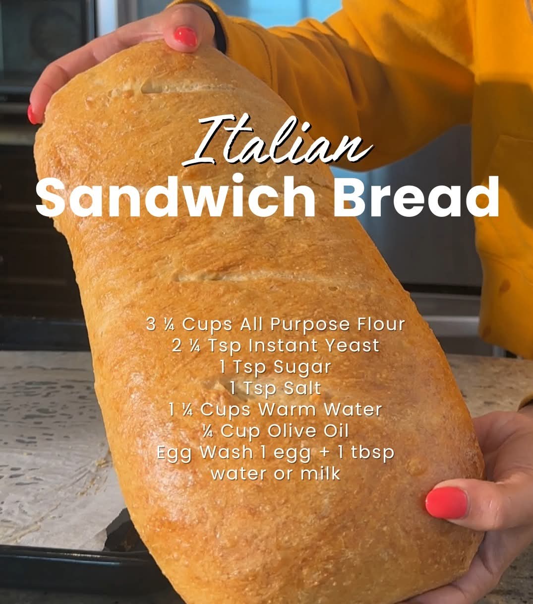 Italian sandwich bread is inspired by traditional rustic Italian loaves often used for panini, deli sandwiches, and family-style shared meals. The classic diagonal slashes on top help the bread expand while baking and give it that authentic bakery appearance.