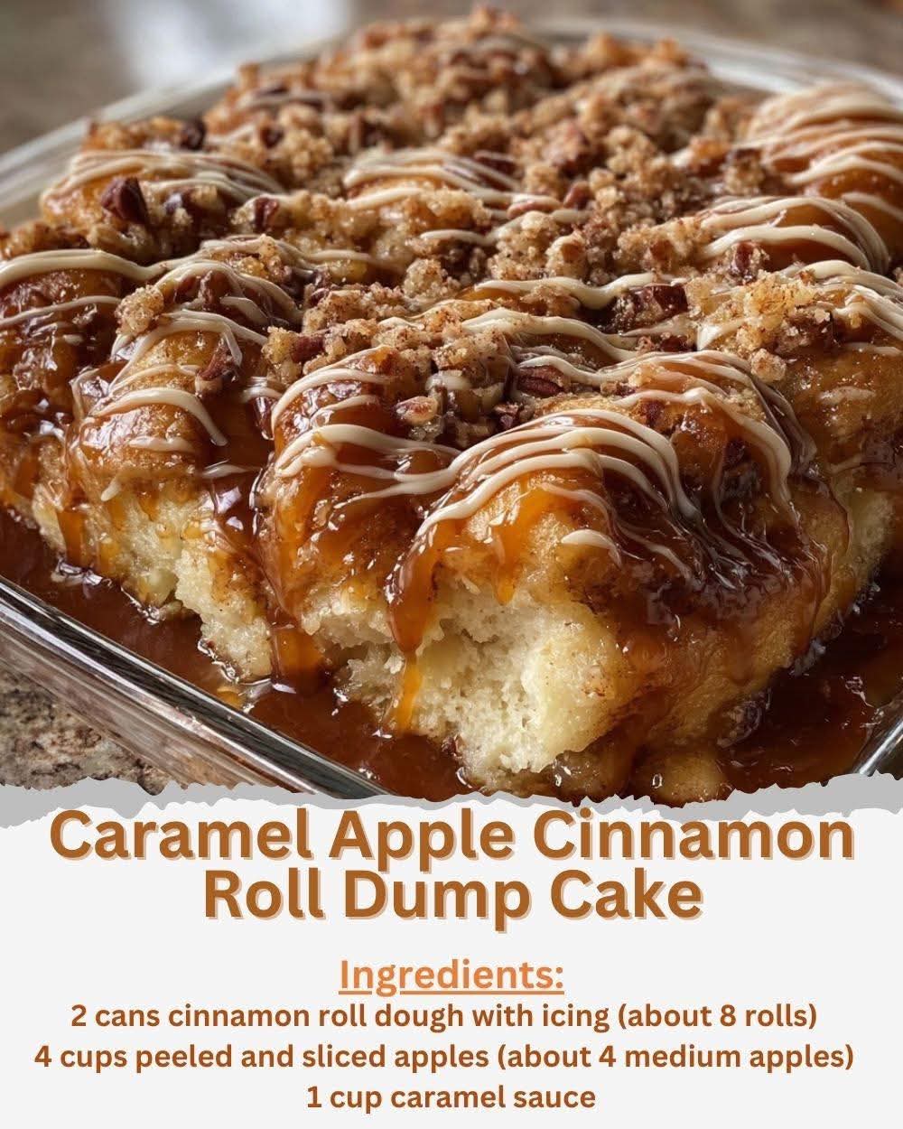 🍏🍯 Caramel Apple Cinnamon Roll Dump Cake