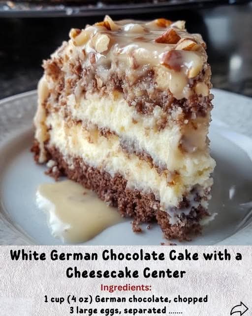 Absolutely! Let’s make this a full, decadent recipe experience for your White German Chocolate Cake with a Cheesecake Center—complete with history, formation, methods, and a sweet nod to dessert lovers everywhere. 🍰✨