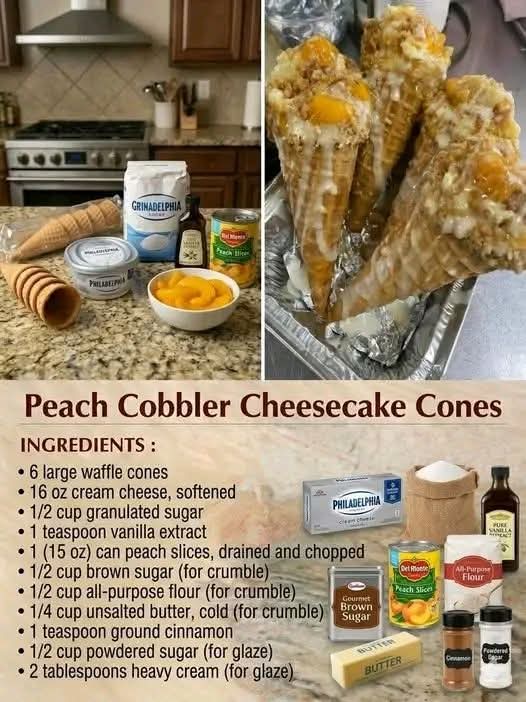 Peach Cobbler Cheesecake Cones are a modern dessert fusion—combining the rustic comfort of cobbler with the creamy elegance of cheesecake and the fun presentation of ice-cream cones.