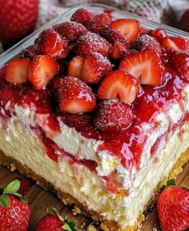 🍓🍰 Strawberry Cheesecake Dump Cake — Sweet, Creamy & Effortlessly Delicious