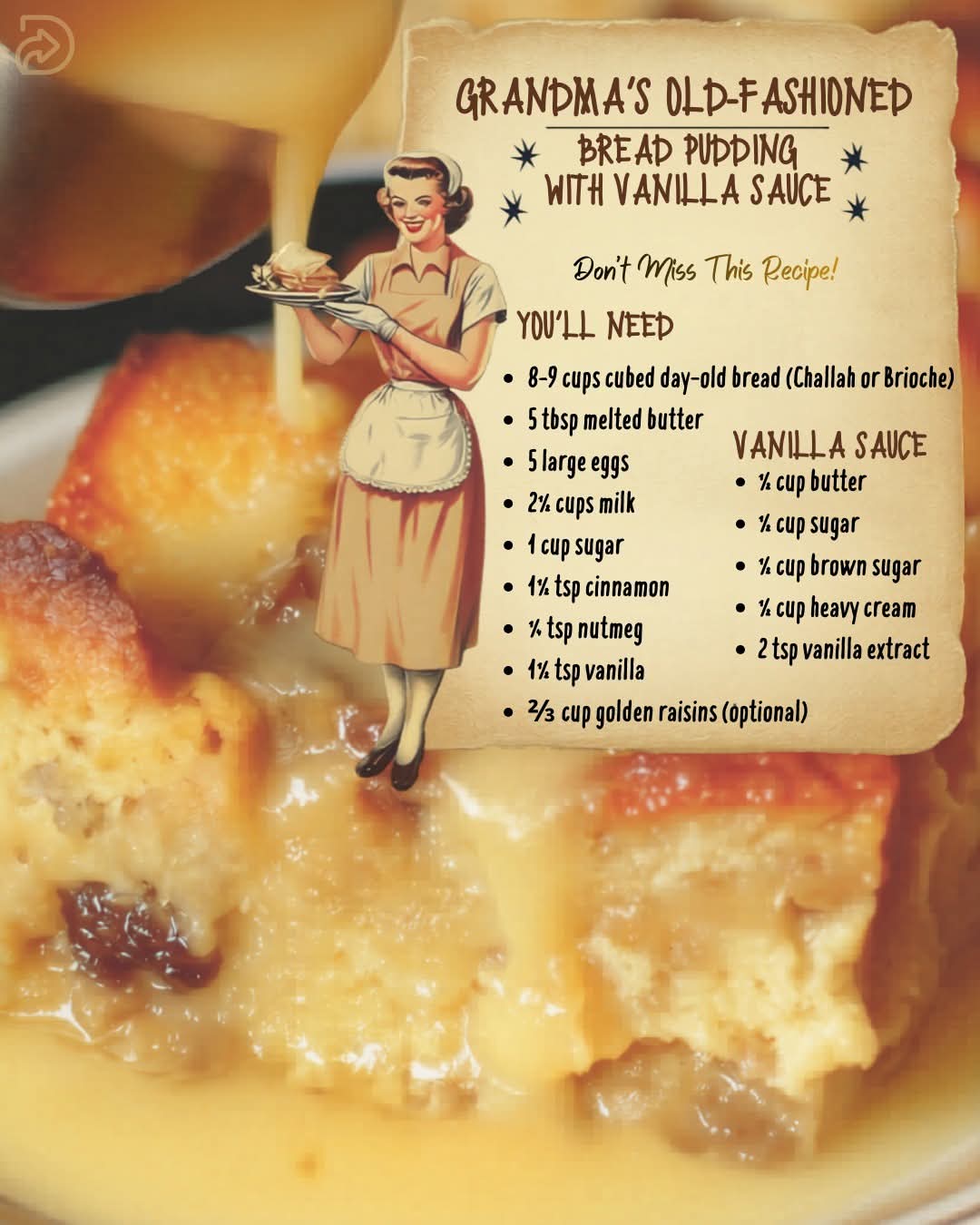 Grandma’s Classic Bread Pudding with Warm Vanilla Cream Sauce 🍞🍮