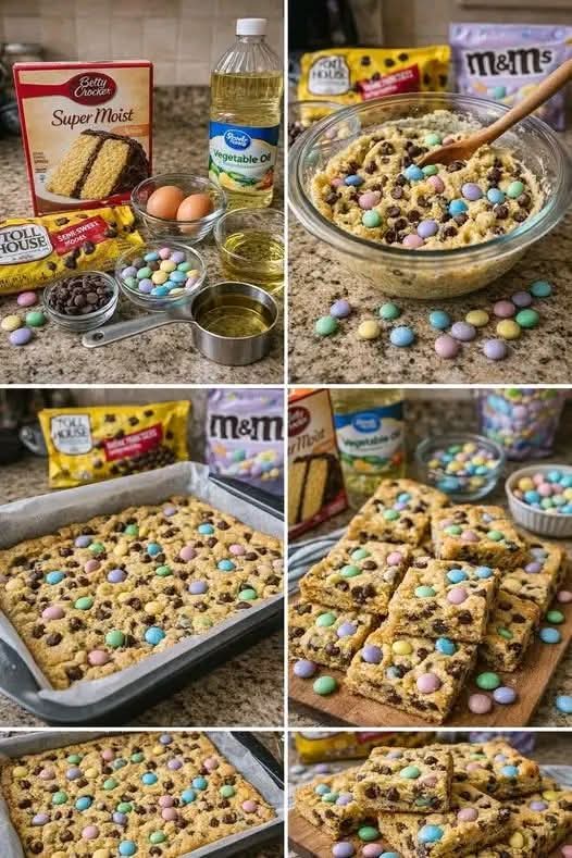Cake mix-based desserts became popular in the mid-20th century as convenience foods grew in demand. Over time, creative bakers began transforming cake mixes into cookies, bars, and other treats. Seasonal adaptations—like these Easter bars—add festive flair using colorful candies tied to holiday traditions.