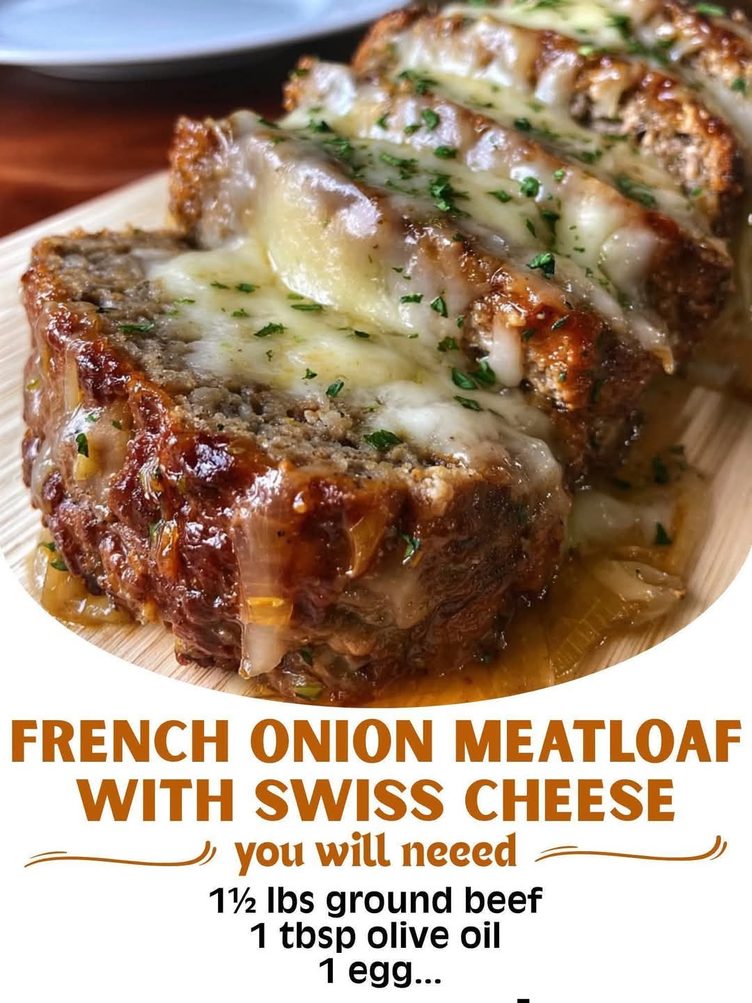 French Onion Meatloaf with Melted Swiss Cheese is more than just a recipe; it’s an experience. It’s the aroma of butter and onions filling your kitchen, the anticipation as the cheese bubbles to golden perfection, and finally, the first bite that delivers a perfect harmony of sweet, savory, and rich flavors. It bridges the gap between rustic, home-style cooking and refined culinary technique. Whether you serve it with creamy mashed potatoes, buttered egg noodles, or a simple green salad, this meatloaf is guaranteed to become a new favorite in your home, a testament to the fact that the best comfort food is often a delicious evolution of the classics we already love.