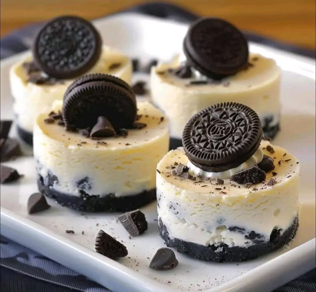 Optional for garnish: a small dollop of whipped cream or a mini OREO on top of each cheesecake