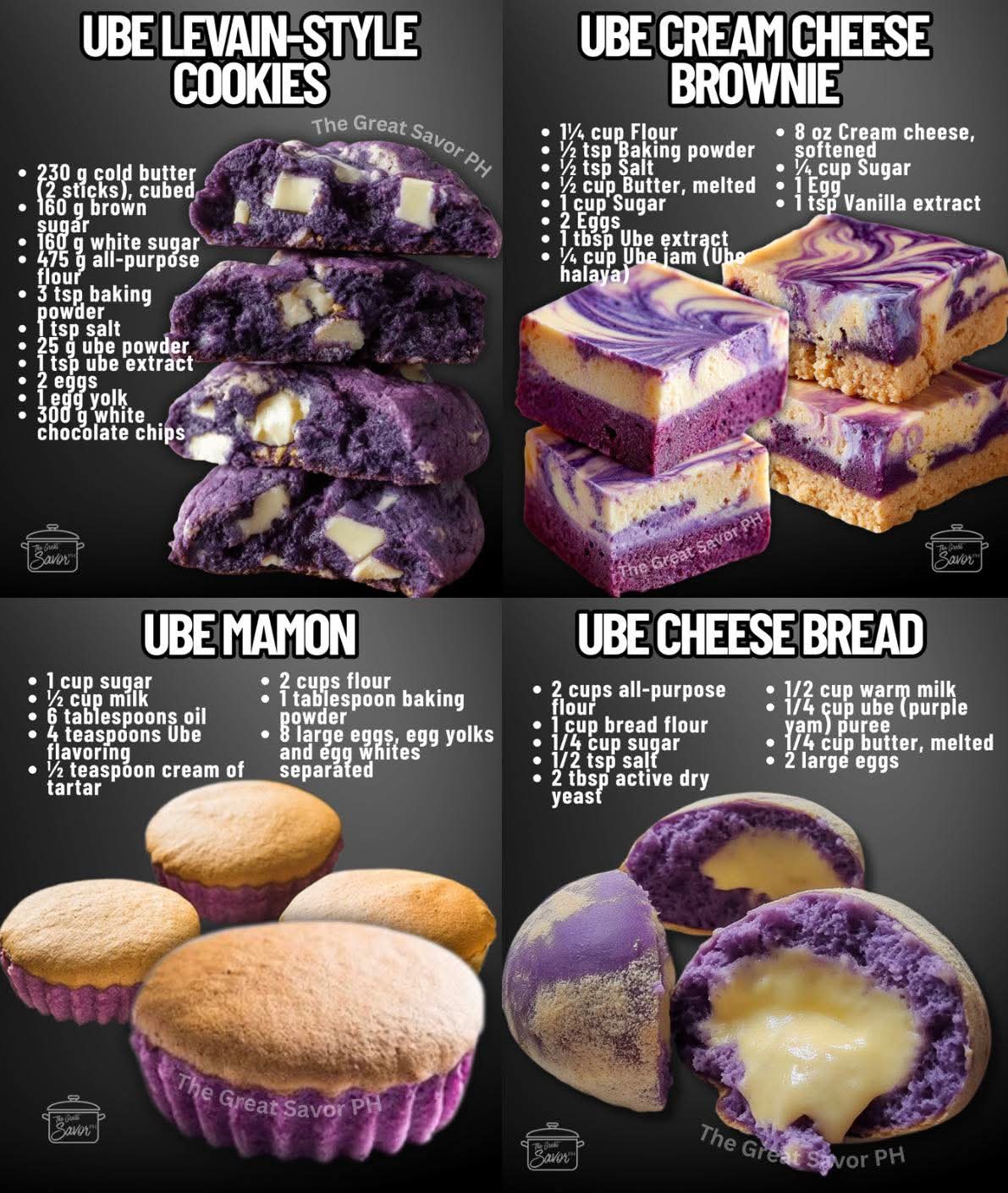 Ube, the vibrant purple yam native to the Philippines, has long been cherished for its naturally sweet flavor and stunning violet hue. From traditional desserts to modern bakery creations, ube has taken the world by storm. Its versatility allows it to shine in everything from cookies to muffins, brownies, and cheesy bread rolls. These pastries not only taste heavenly but also make any dessert table pop with color. This guide covers four iconic ube treats: Ube Levain-Style Cookies, Ube Cream Cheese Brownies, Ube Mamon, and Ube Cheese Bread, with detailed instructions, methods, and tips for the perfect results.