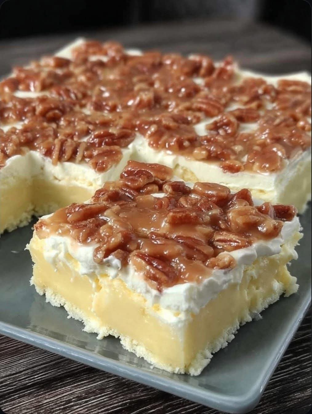 The result is a sliceable, layered dessert with a perfect balance of creamy, soft, and slightly chewy textures.