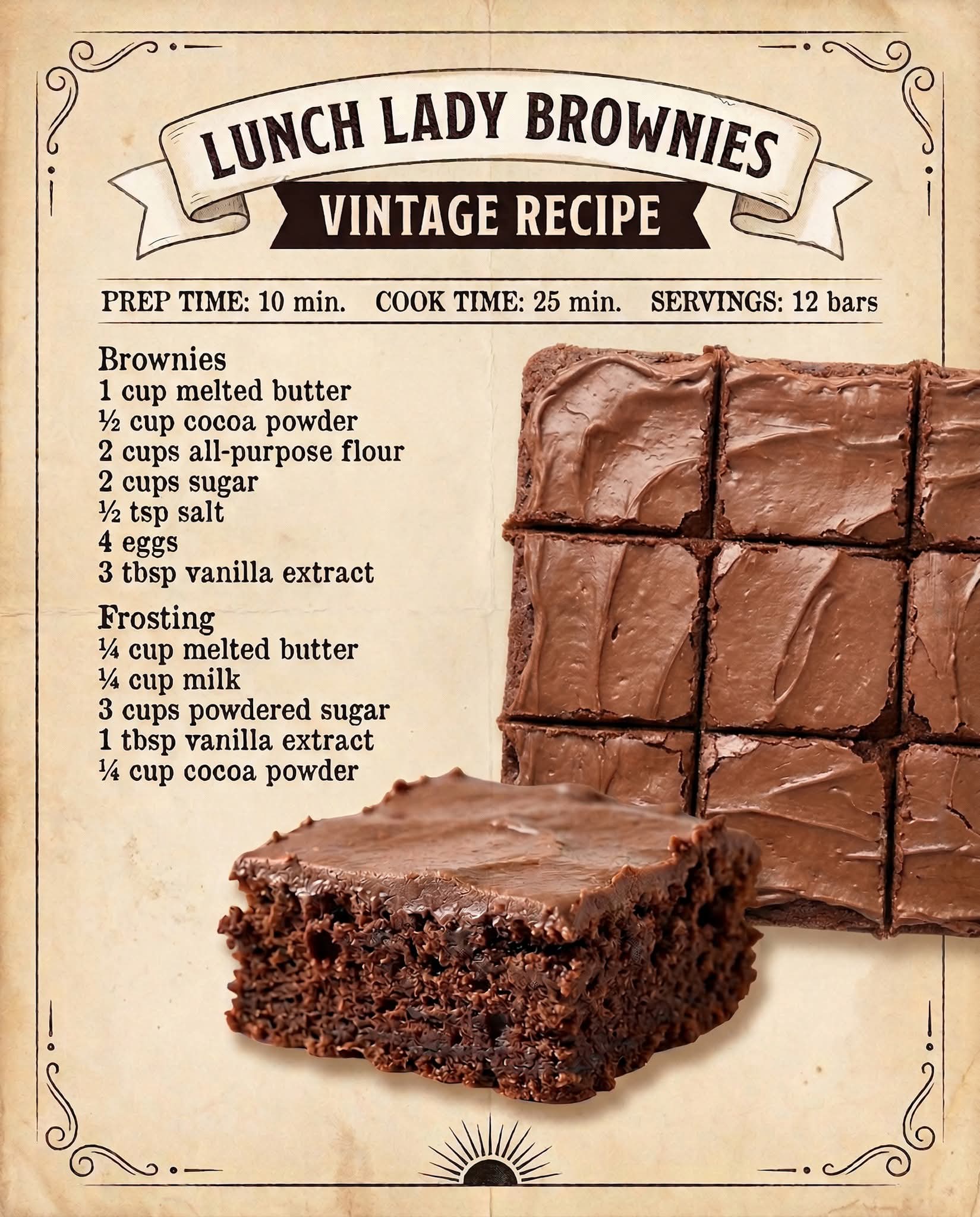Lunch Lady Brownies became popular in American school cafeterias decades ago. Made in large sheet pans, they were designed to be affordable, easy to prepare, and crowd-pleasing. Their simple ingredients and rich flavor made them a staple treat, and over time, the recipe spread into homes, becoming a nostalgic favorite across generations.