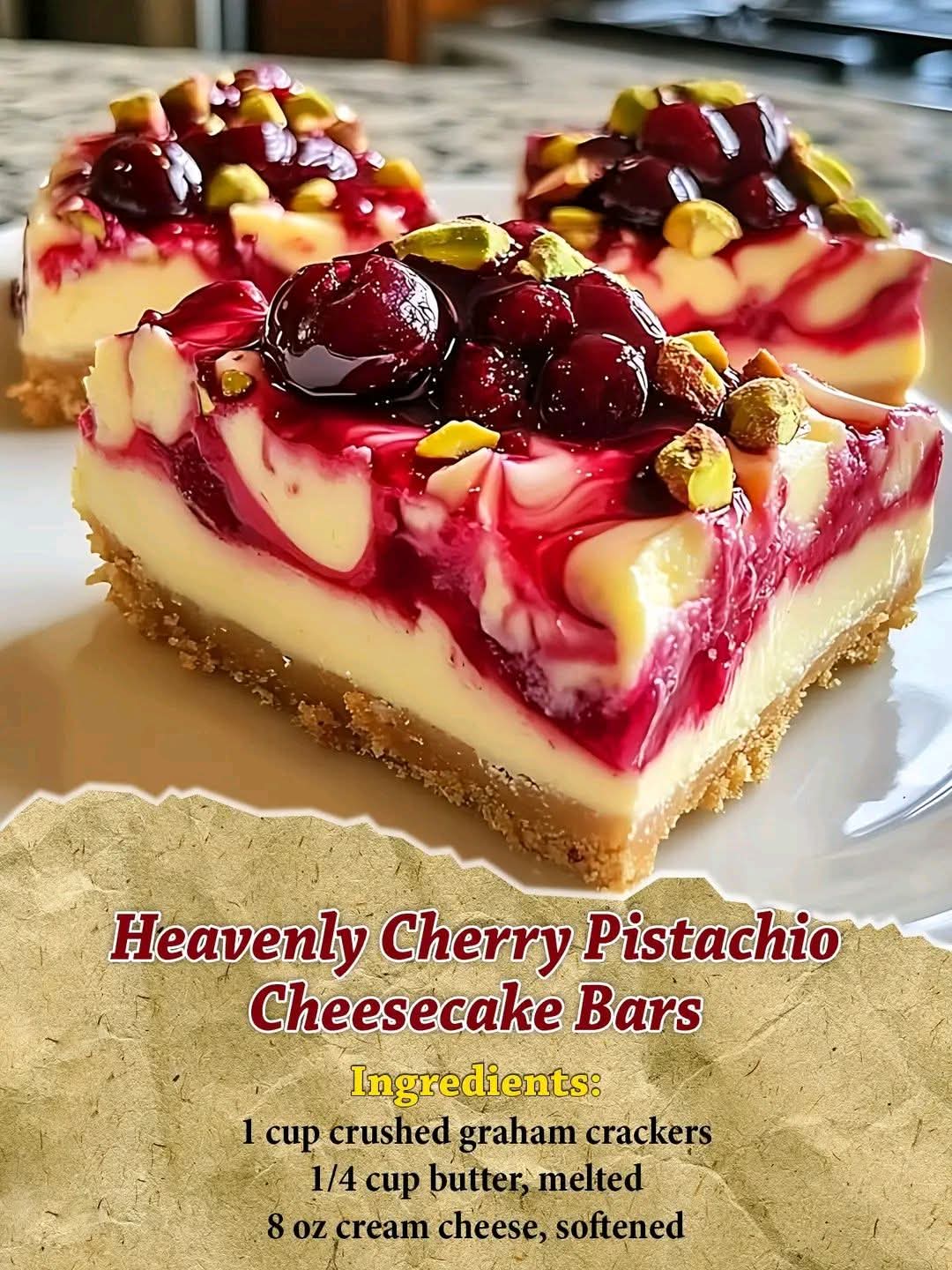 🍒✨ Heavenly Cherry Pistachio Cheesecake Bars ✨🍒
