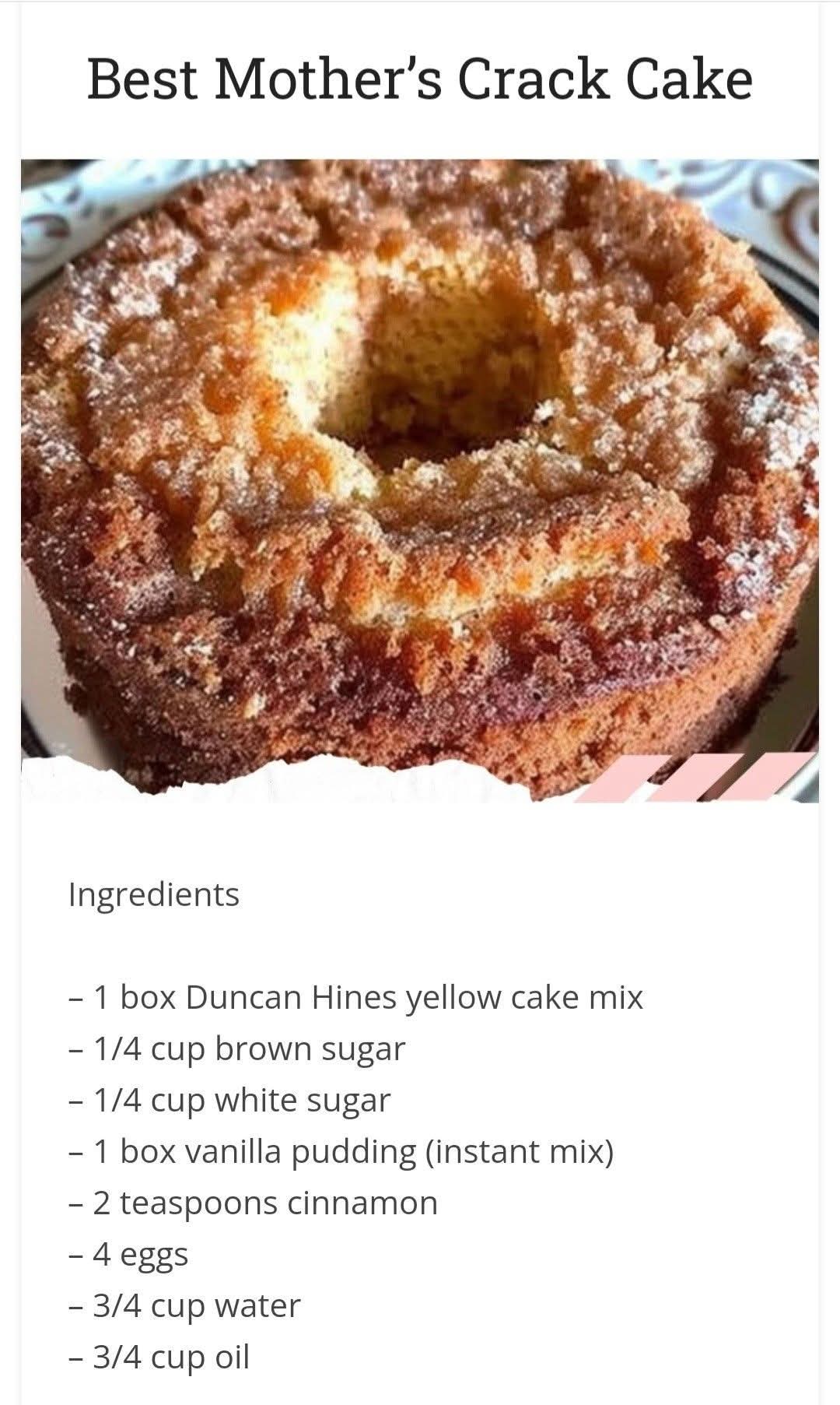 Mother’s Crack Cake is more than a dessert—it’s an experience. Moist, buttery, with a warm, sweet glaze that melts in your mouth, it’s a testament to the simple joys of homemade baking. Every forkful is a reminder of love, family, and the magical power of a cake made with heart. Once you try it, you’ll understand why it’s called “crack cake”—and why it holds a permanent spot in your heart (and kitchen).