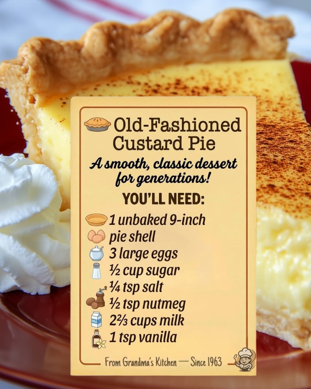 Absolutely! Let’s make your Old-Fashioned Custard Pie shine with a full, rich write-up. I’ve expanded it with history, methods, tips, and the little touches that make it a classic loved by generations.