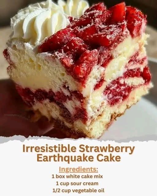 This cake is more than a dessert—it’s an experience of flavors colliding in the best possible way. Slice, serve, and watch the “earthquake” bring smiles to everyone’s face. 🌪️🍓