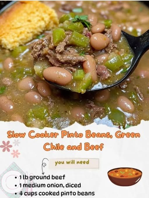 This recipe is a celebration of Southwestern comfort food, blending tender beans, beef, and smoky green chiles into a dish that feels rustic, hearty, and deeply satisfying. 🥘🌶️