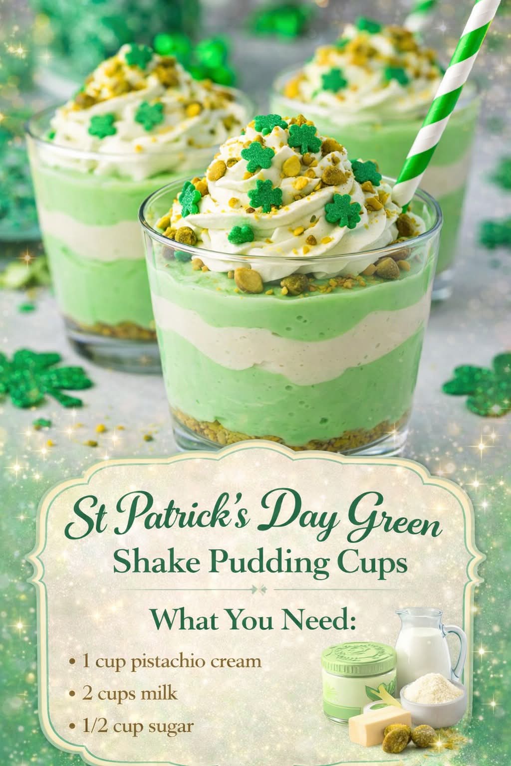 🍀 St. Patrick’s Day Green Shake Pudding Cups 🍨