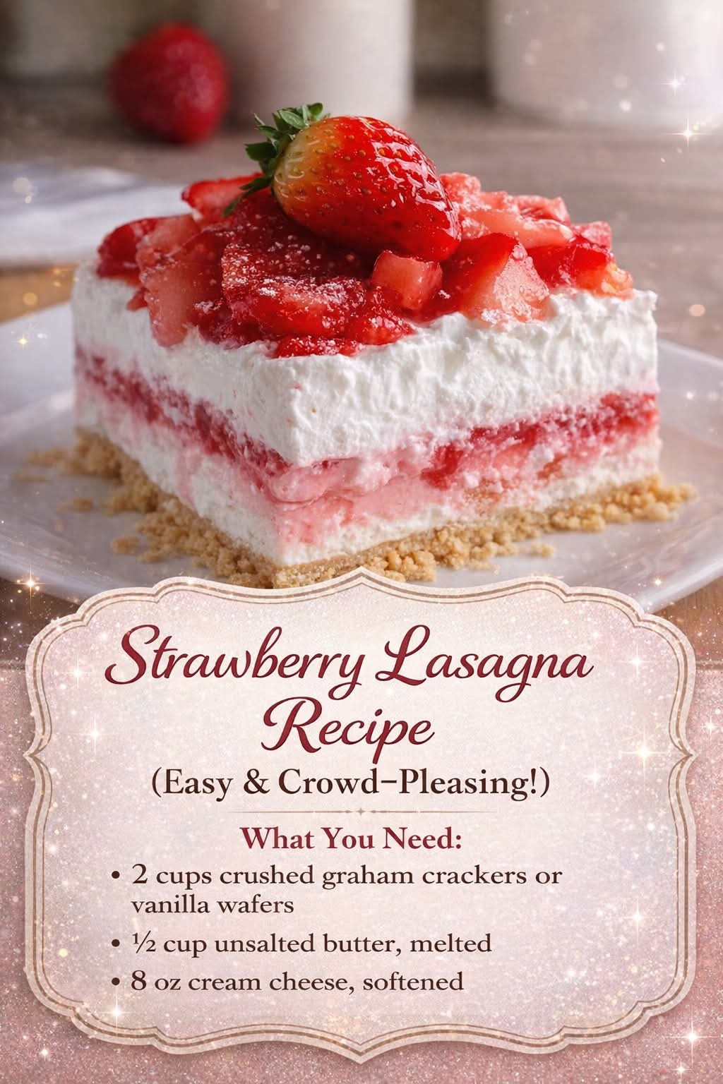 🍓 Strawberry Lasagna (Easy & Crowd-Pleasing!)