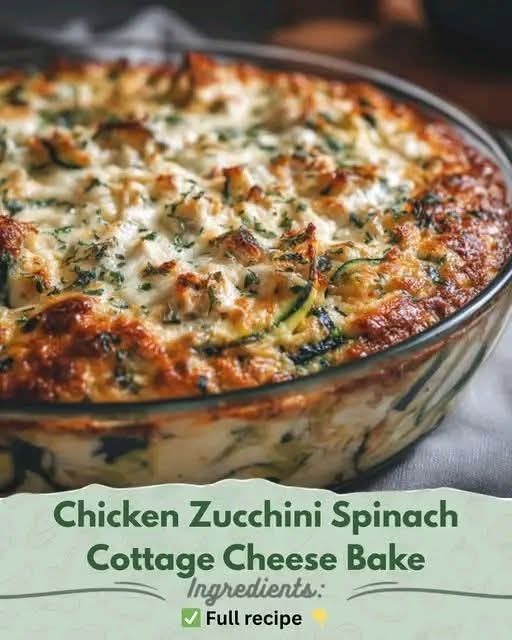 🥒🍗 Chicken Zucchini Spinach Cottage Cheese Bake 🍗🥒