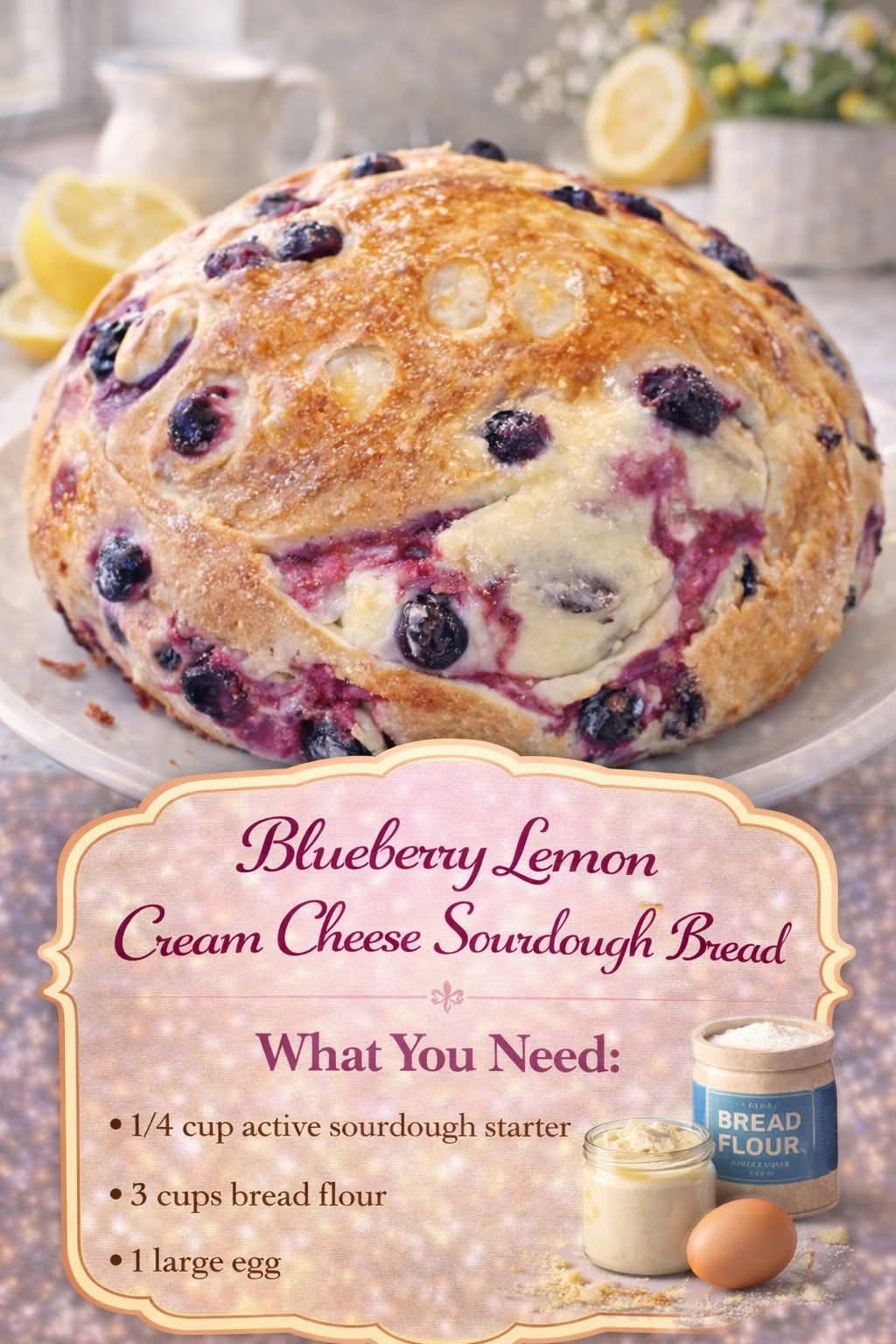 🍋🫐 Blueberry Lemon Cream Cheese Sourdough Bread