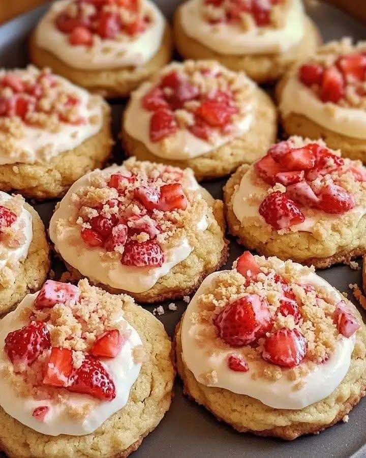 The concept of a cheesecake cookie is relatively modern, emerging from the creativity of bakers in the 2000s who sought to combine the indulgence of cheesecake with the comforting familiarity of cookies. Crumbl Cookies, founded in 2017, popularized the soft, thick, and heavily topped cookie style. Strawberry toppings were a natural evolution, pairing the tangy richness of cream cheese with bright, juicy berries—an homage to classic strawberry cheesecake.