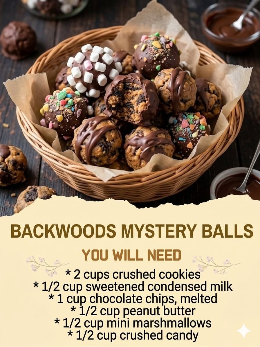 Backwoods Mystery Balls are a rustic, no-bake dessert that combines crushed cookies, creamy sweetness, and rich melted chocolate into bite-sized delights. The “mystery” comes from their versatility—you can customize them with different flavors, textures, and fillings every time. They’re quick to make, require minimal ingredients, and deliver maximum satisfaction.