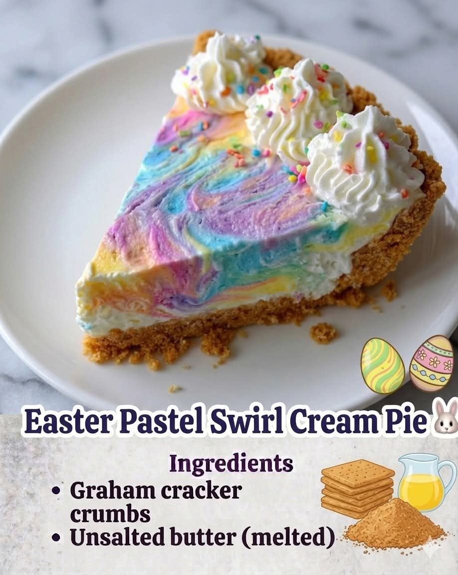 Cream pies have long been a staple in American and European dessert traditions, evolving from custard-based pies into lighter, whipped, no-bake versions in modern kitchens. The pastel swirl style is inspired by springtime celebrations and especially Easter, where soft colors symbolize renewal, joy, and new beginnings. This pie blends classic comfort with festive creativity.