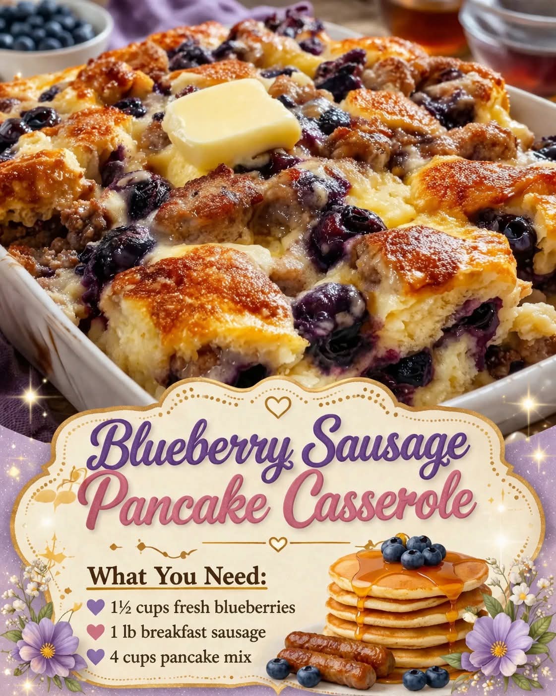 Blueberry Sausage Pancake Casserole 🍇🥞🌭