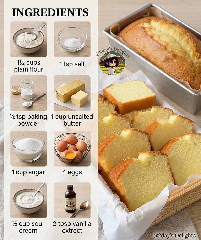 Few things in baking are as comforting as a golden, buttery loaf cake. With its tender crumb, subtle sweetness, and warm vanilla aroma, this cake is the perfect companion for morning coffee, afternoon tea, or a cozy evening treat. Simple yet elegant, it’s made with classic ingredients you likely already have in your pantry. Its soft texture comes from a delicate balance of butter, eggs, and sour cream, giving it richness without being heavy.