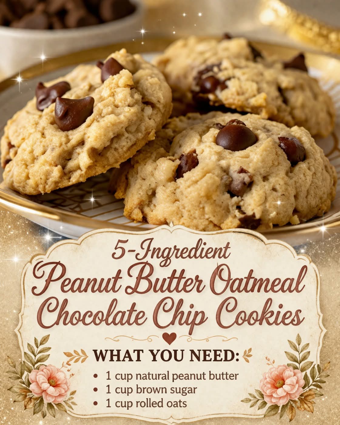 If you’re craving something sweet, wholesome, and incredibly easy to make, these 5-Ingredient Peanut Butter Oatmeal Chocolate Chip Cookies are your perfect go-to treat. With no complicated steps and simple pantry staples, this recipe delivers soft, chewy cookies packed with nutty richness and chocolatey goodness. Whether you’re baking for family, friends, or just yourself, these cookies come together quickly and taste like pure comfort in every bite.