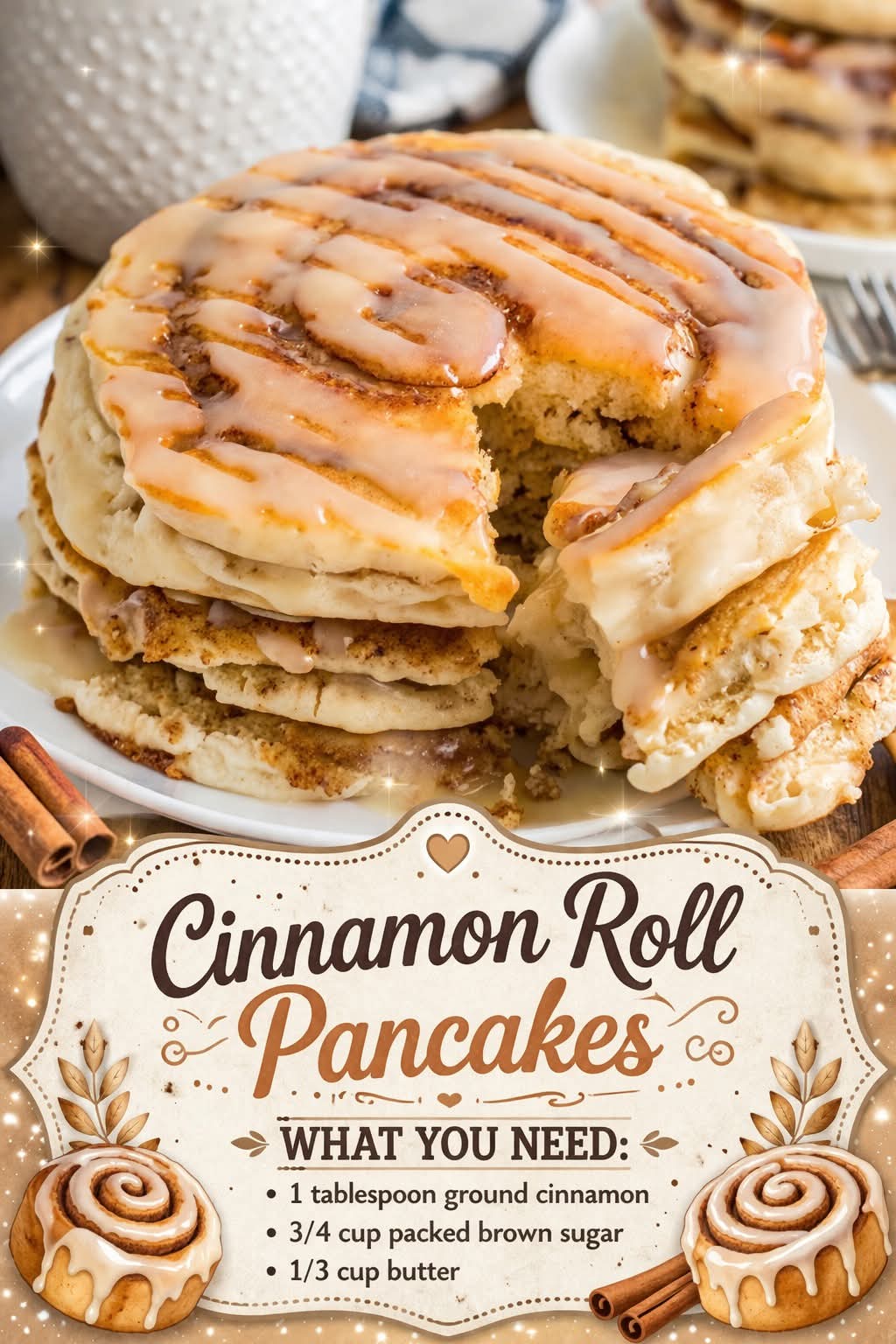 🥞✨ Cinnamon Roll Pancakes — Sweet, Swirled Breakfast Perfection