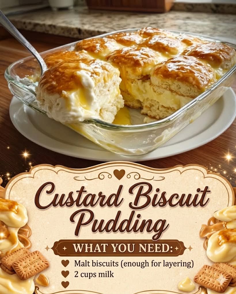 Custard Biscuit Pudding is the perfect example of how simple ingredients can create something magical. Itโ€™s quick to prepare, requires no baking, and delivers a rich, creamy texture with every spoonful. Whether served at a gathering or enjoyed quietly at home, itโ€™s a dessert that always brings smiles.